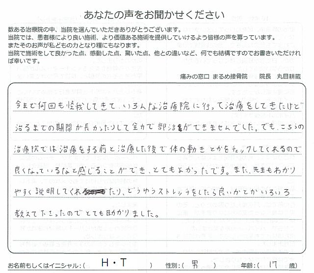 いつも明るく優しく迎え入れてくださるので、またどこかを痛めてしまった時は、お世話になりたいと思います!!